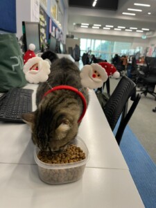 These Egyptian cats are cared for by the British Council local staff, who pay for kibble, vaccines, vet fees for spaying and neutering, all out of their own pockets. As far as anyone knows, no one has ever resented caring for them, nor have the cats caused any trouble. Students, exam-takers, and people wanting to know about UK scholarships come in and out all day and see the cats, and there has never been the slightest fuss about them. And in fact, other prestigious foreign institutions in the city also shelter cats on their premises, including, I’m told, even the British High Commission itself.