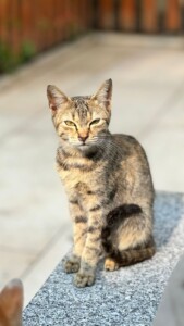 These are not feral cats, but just like hundreds of well-loved housecats around the world . . . Only these cats belong to no man. Like domestic cats everywhere, they like to nap in chairs unoccupied by big, lumbering human beings. They nap in the morning, in the afternoon, in the evening. They like meals. Above all, they like comfort. They like to laze in the grass on sunny mornings. They like to go to the restaurant next door to see if maybe somebody might give them something. They belong to the place itself.